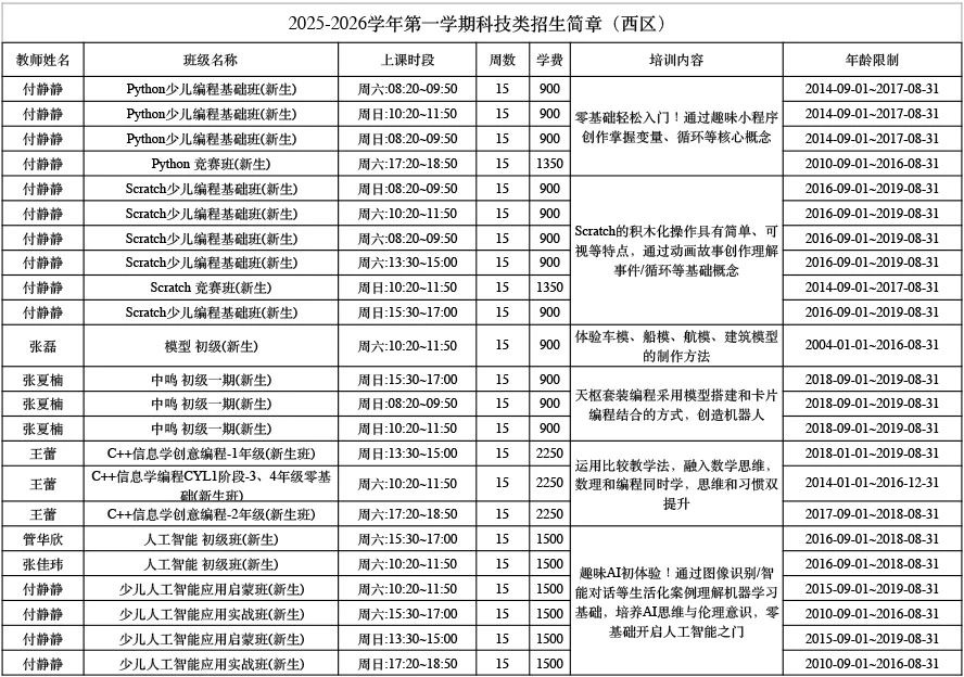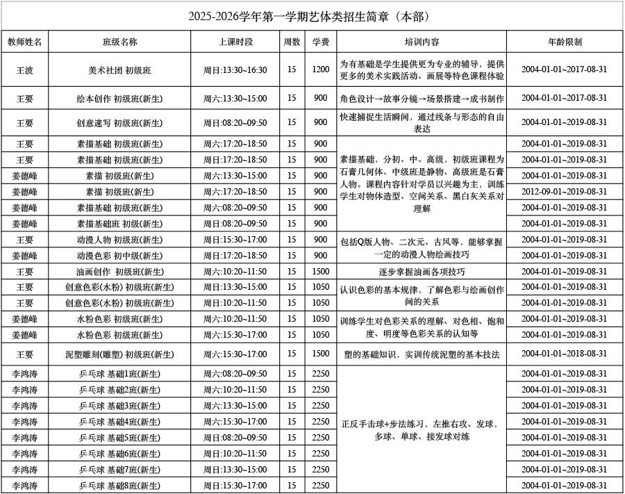 【招生信息】2025-2026学年第一学期招生通知