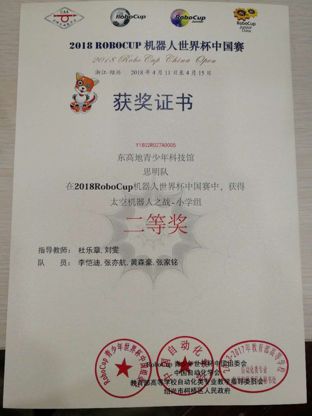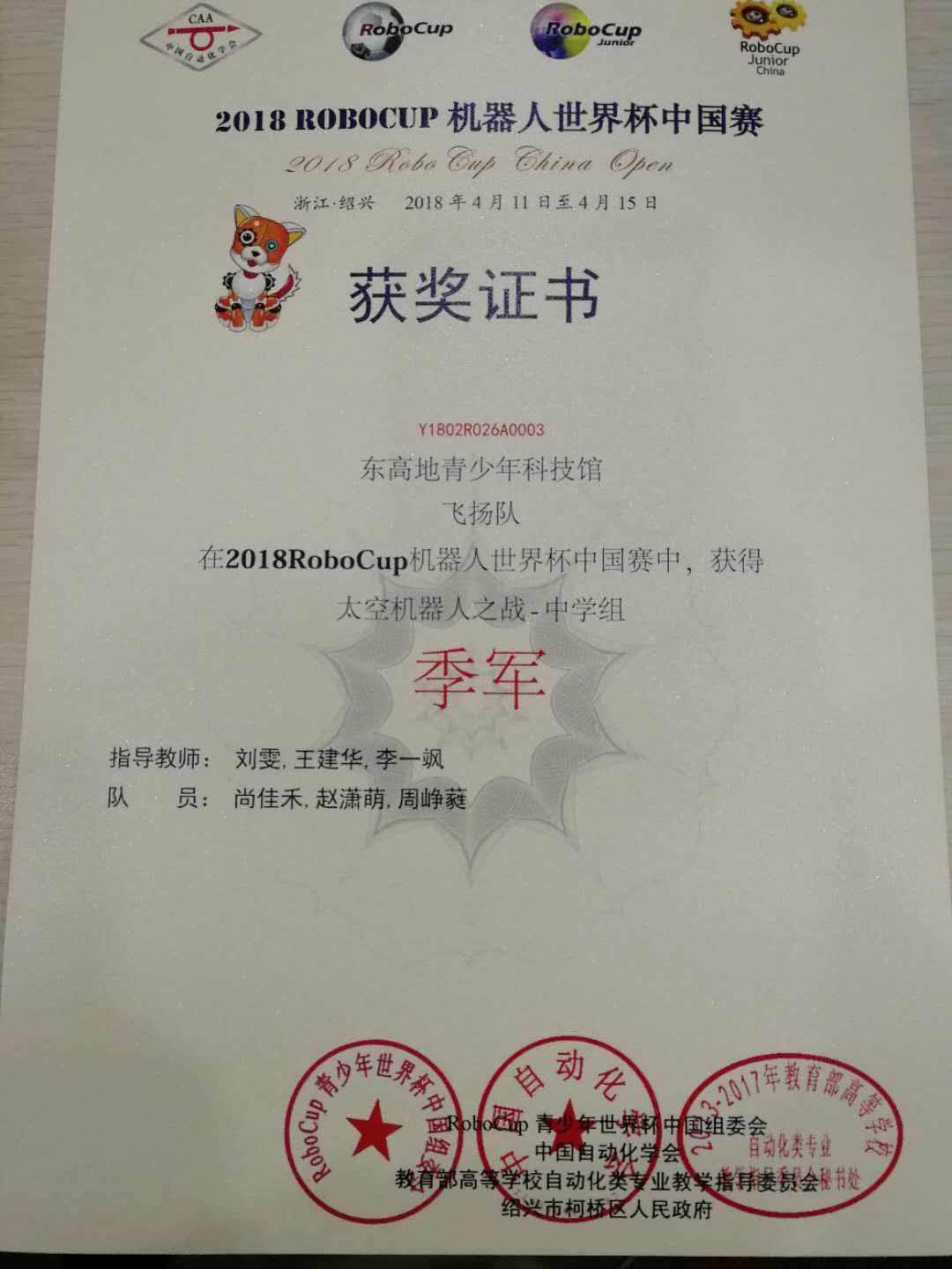 4月12日至15日,东高地青少年科技馆机器人代表队参加了在绍兴柯桥中国轻纺城国际会展中心举办的RoboCup Junior国际青少年机器人世界杯比赛中国赛。
