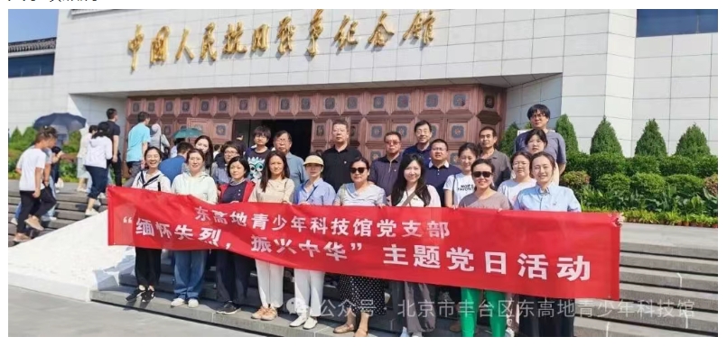 为纪念中国人民抗日战争暨世界反法西斯战争胜利80周年,深入学习贯彻习近平新时代中国特色社会主义思想,加强党员教师的思想政治教育,东高地青少年科技馆党支部组织全体党员及教师,于8月1日前往卢沟桥畔的中国人民抗日战争纪念馆,开展了以“勿忘国耻、缅怀先烈、珍爱和平、振兴中华”为主题的党日活动,在历史的回望中汲取奋进力量,强化使命担当。