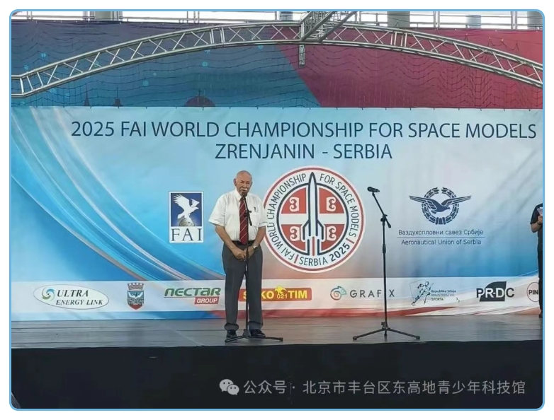 2024年全国青少年航空航天模型锦标赛上,我以S3A/2伞降模型火箭项目全国第三名的成绩脱颖而出,成功入选中国航天模型代表队,获得了征战2025世界航模锦标赛的宝贵机会。202582314时,FAI航天模型世界锦标赛在塞尔维亚兹雷尼亚宁盛大开幕。来自18个国家的代表队齐聚一堂,开幕式上组委会发表了热情洋溢的致辞。