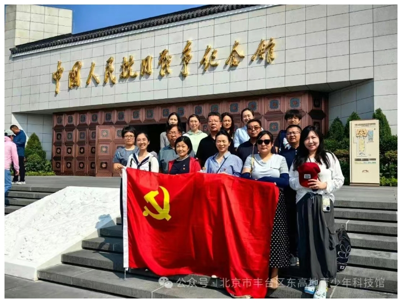 为纪念中国人民抗日战争暨世界反法西斯战争胜利80周年,深入学习贯彻习近平新时代中国特色社会主义思想,加强党员教师的思想政治教育,东高地青少年科技馆党支部组织全体党员及教师,于8月1日前往卢沟桥畔的中国人民抗日战争纪念馆,开展了以“勿忘国耻、缅怀先烈、珍爱和平、振兴中华”为主题的党日活动,在历史的回望中汲取奋进力量,强化使命担当。